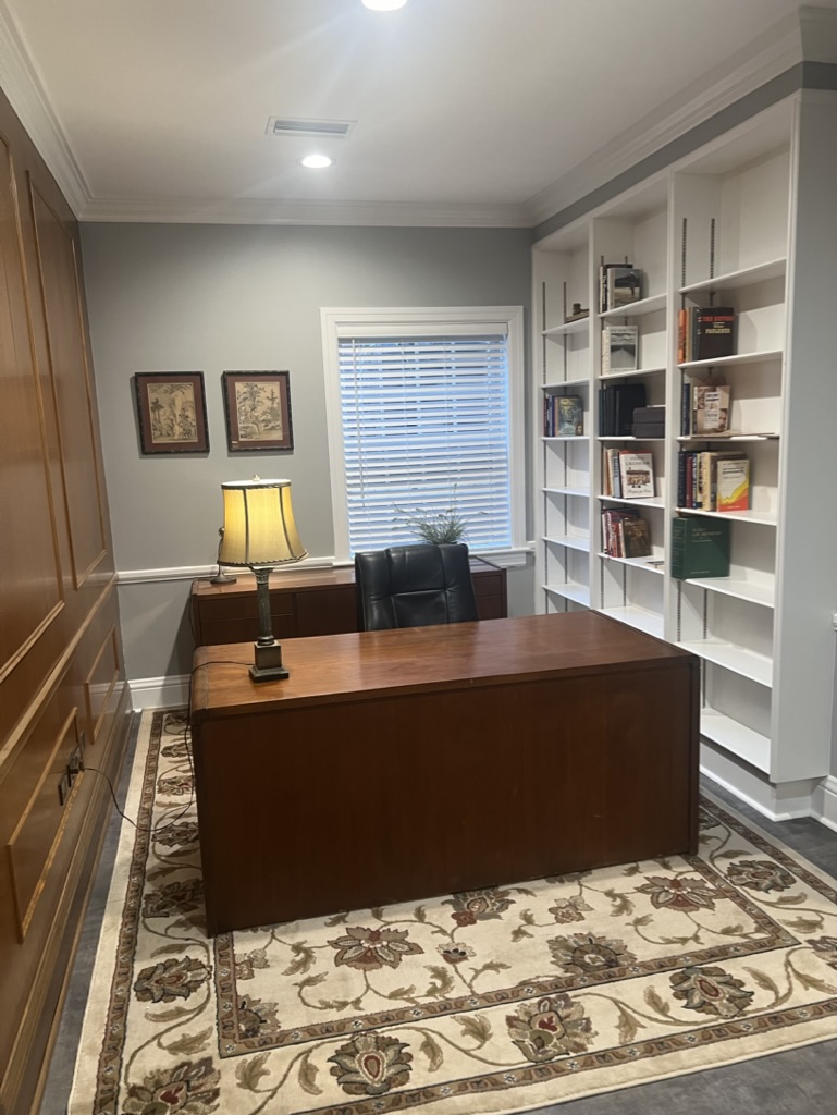 The law partners who built the building – including Allison’s father – wanted to build an elegant, professional office building – that would also be “hurricane proof” – so that the firm’s families could shelter there if needed. It has 13″ thick masonry walls, and steel “I” beam construction, with an added benefit of being very quiet.